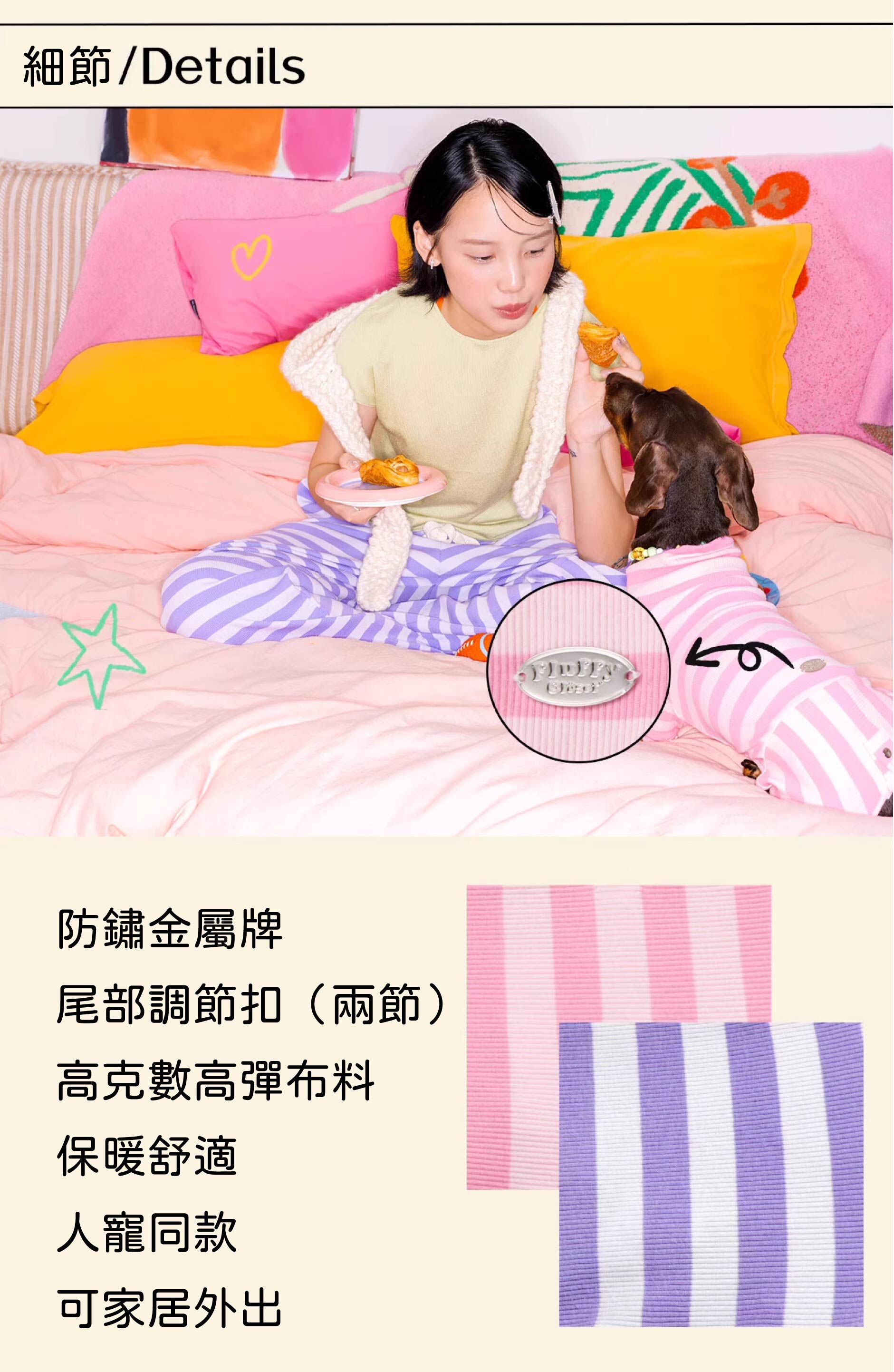 採用高彈、高克數面料,柔軟親膚又保暖,讓您與毛孩在家放鬆穿著也能自在活動。