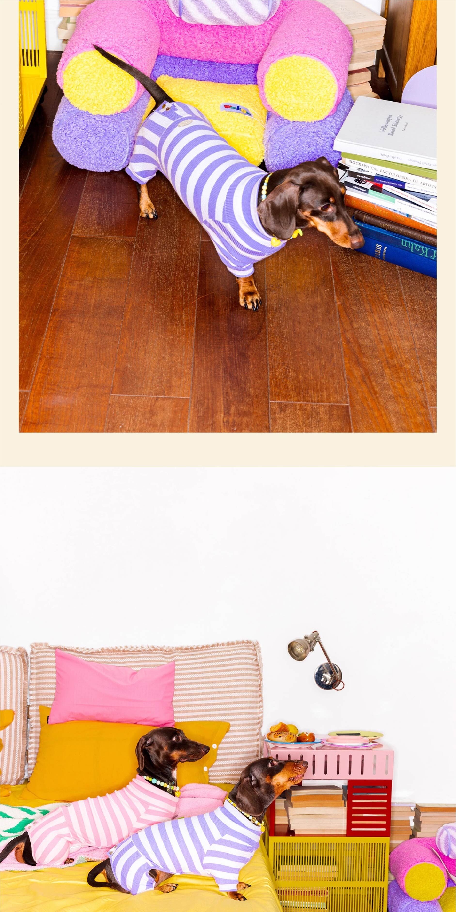 Fluffy Closet - 粉紫色條紋寵物四腳衣