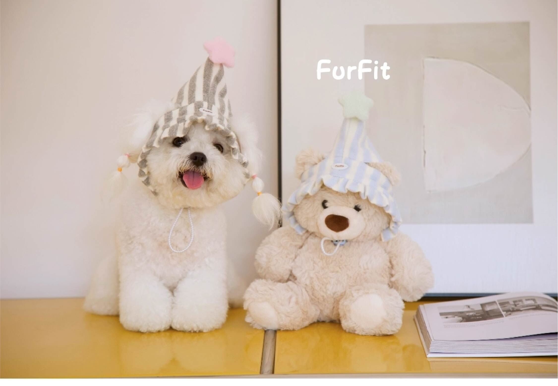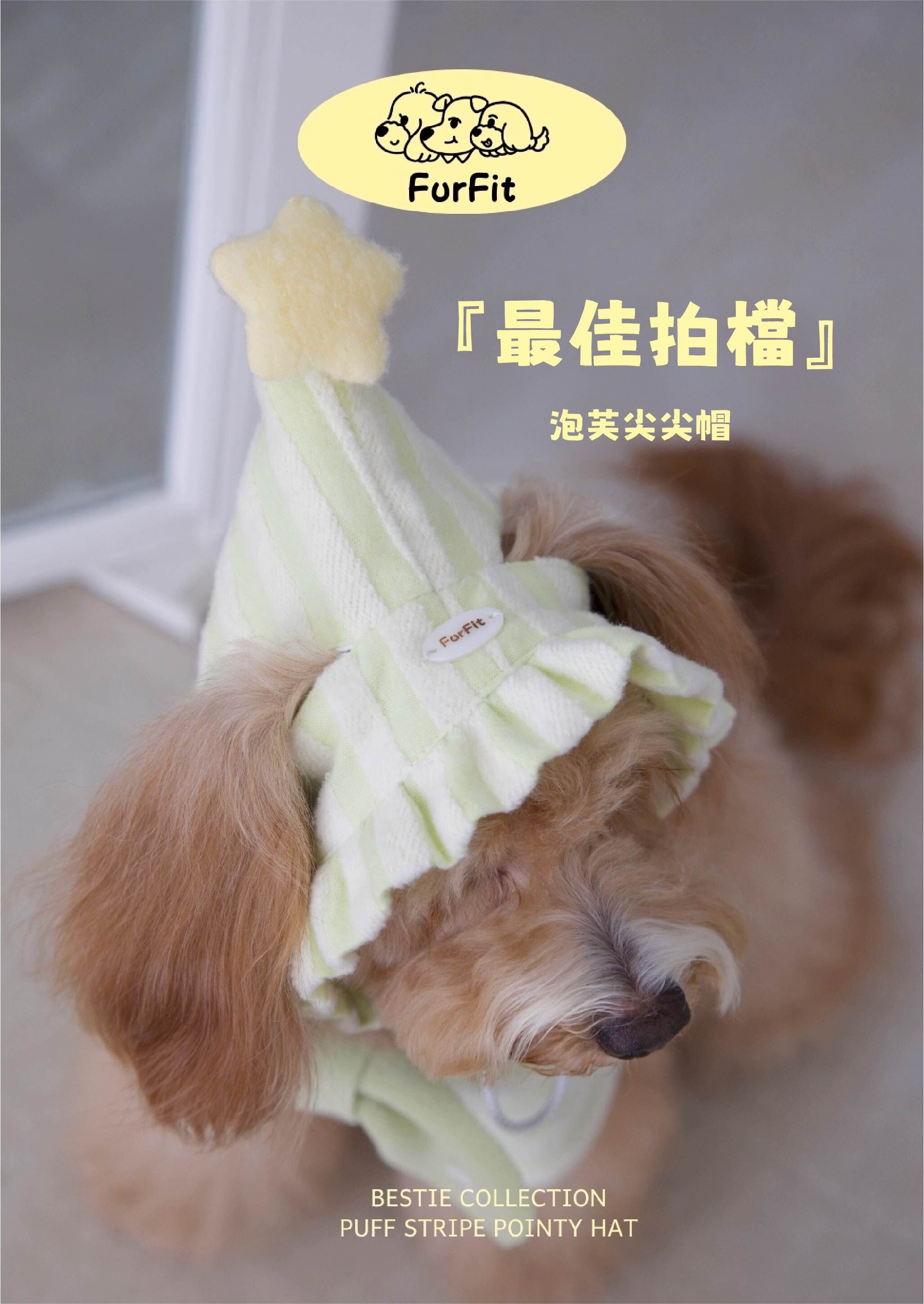 FurFit - 寵物條紋泡芙尖尖帽- ( 奶藍色/奶綠色/芝麻色)